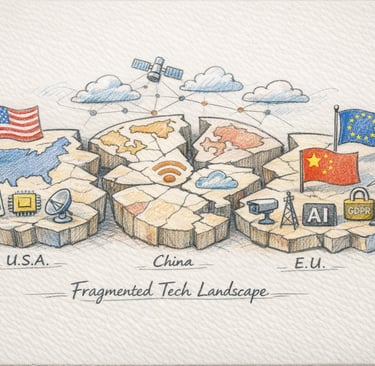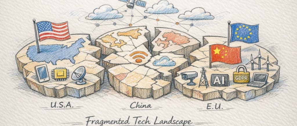 The global technology order is fracturing along a fault line that runs directly through the battery supply chain. The US and China are assembling incompatible ecosystems — different chips, different AI standards, different data regimes. Countries that have already committed their infrastructure to one side inherit all its constraints. Those that have not yet committed hold a rare, time-limited strategic opportunity.